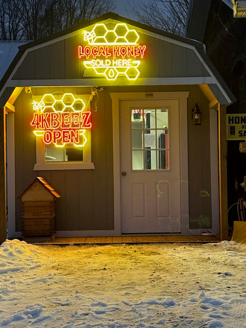 we also now stock a wide variety of different flavored honey from pollinating different crops . made by the bees nothing added or infused